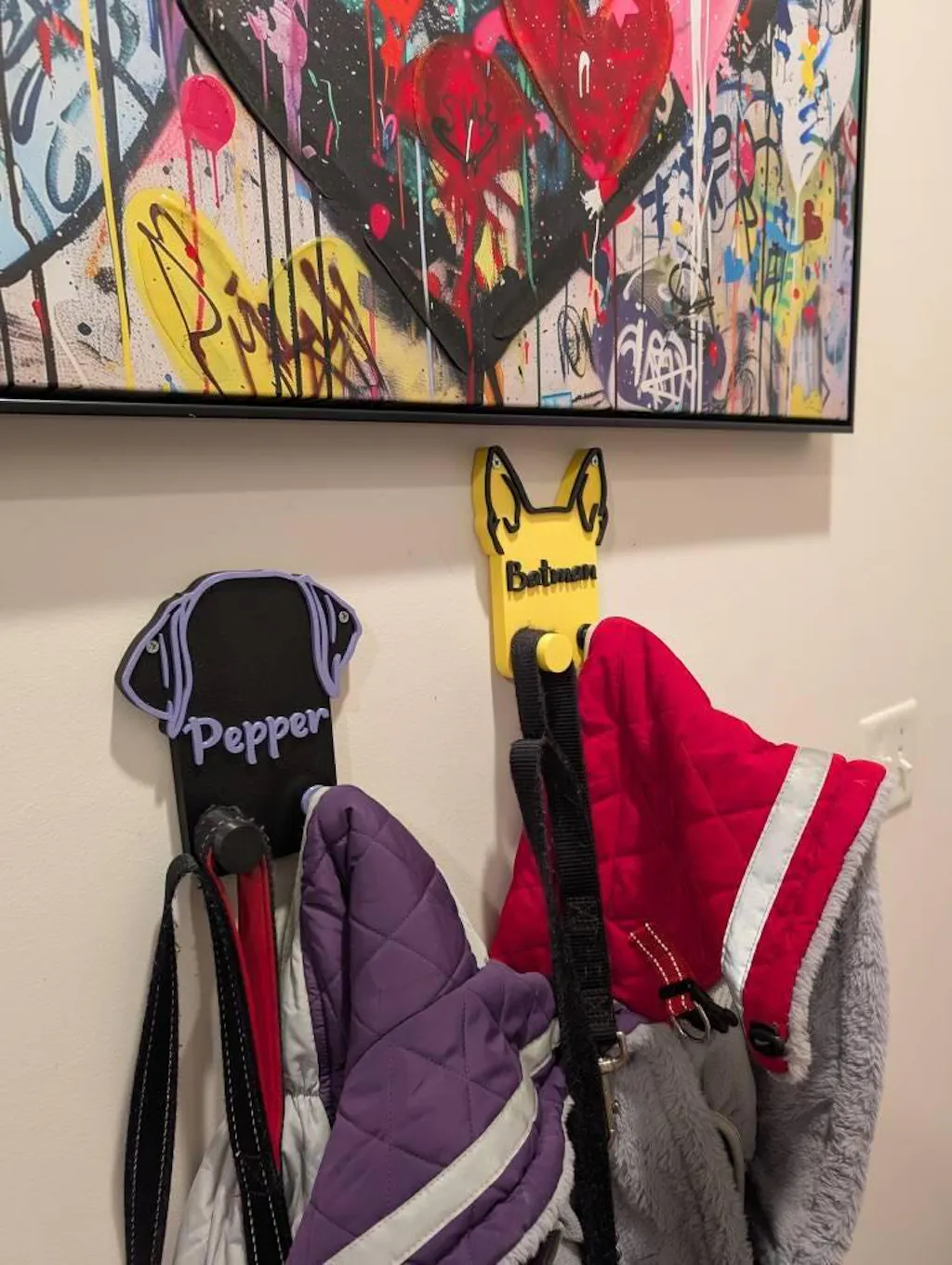 Upgrade your dog's walking routine with our personalized leash holders. Handcrafted for style and durability, our custom hangers and racks keep your pet's gear organized and easily accessible.